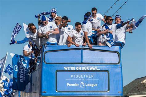 Between 1979 and 1983 they were in the old First Division, then the top tier of English football. In 1983 they reached the final of the FA Cup, which they drew 2–2, but lost 4–0 in a replay to Manchester United. They were relegated from the First Division in the same season. Over the next decade financial problems dragged the club down the leagues and in 1997 they narrowly avoided relegation to the Nationwide Conference. A boardroom takeover saved Brighton from going out of business, and by 2001 they had climbed out of the basement division. A second successive promotion was achieved, but they were relegated after just one season and they bounced between the two divisions until promoted to the Championship at the end of the 2010-11 season. They signalled a new phase in the club's history by officially opening their brand new home, The Falmer Stadium. Brighton narrowly missed an automatic promotion place in 2014-15 before losing the play off semi final to Sheffield Wednesday. They finally gained promotion to the Premier League at the end of the 2016-17 season and retained its position in the top tier of English where they have remained finishing 9th place in the 2021-22 season, their highest ever placing in the top flight.