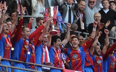The 1980s began with relegation and the club did not return to the top tier of English football until wining the play-offs in 1988-89. A high point at this time was reaching the 1990 FA Cup Final only to lose in a replay against Manchester United. The club built on the success of the previous season in 1990-91 by achieving its highest league finish of 3rd and returning to Wembley to win the Zenith Data Systems Cup. It beat Everton 4-1 in the final, its only cup win to date. The 1990s saw the club promoted and relegated from the Premier League several times, that last relegation taking place at the end of the 1998-99 season. This began worrying times for the club as it was plunged into administration on two separate occasions although it managed to retain its place in the Championship. They emerged from these difficulties during the 2012–13 season when Palace finished fifth and gained promotion to the Premier League through the play-offs. Under Alan Pardew they reached the 2016 FA Cup Final losing 2-1 after extra time to Manchester United. Pardew was sacked and replaced by Sam Allardyce, who kept the club in the Premier League but resigned unexpectedly at the end of the season. A disastrous start under new manager Frank de Boer was overcome against the odds by new manager Roy Hodgson. Hodgson returned in 2023 to repeat the feet.