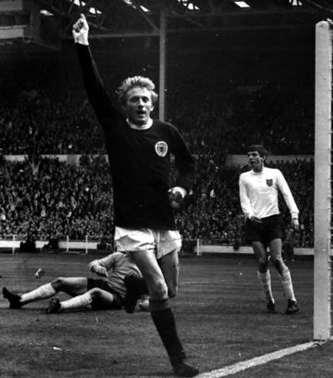 Denis Law (Born in Aberdeen on 24 February 1940) was a legendary Scottish inside-forward, nicknamed the "King of Old Trafford", who was one of the major stars in the classic Manchester United team of the 1960s. He began his professional career with Huddersfield Town in 1957, having been signed by Bill Shankley, and made his debut for Scotland a year later, scoring in his first game. Law was an unlikely star, frail and bespectacled. He soon established a reputation, however, as a resilient and aggressive player attracting the attention of Manchester City who signed him in 1960. A year later he signed for Torino before being lured to Manchester United in 1962. In 1963 he not only scored for United in the FA Cup Final but was also selected to play for the rest of the world against England to celebrate the 100th anniversary of the FA. Law was elected European Footballer of the Year in 1964 and subsequently contributed to United's two championships in 1965 and 1967. In 1968, United won the European Cup for the first time, but Law's knee injury meant that he missed both the semi-final and the final. He scored a record 30 goals in 55 matches for Scotland (a mark he shares with Kenny Dalglish, who needed 47 more games to achieve the feat) but he was so much more than a simple goal-scorer. "No other player," noted Sir Matt Busby, "scores as many miracle goals as Denis. He's the quickest-thinking player I've ever seen, seconds quicker than anyone else. He has the most tremendous acceleration, can leap to enormous heights, and is an impeccable passer of the ball." In 1973 Law returned to Manchester City and at the end of the season suffered the trauma of scoring the crucial goal that sent his old club down into the Second Division. Law admitted later, 'I have seldom felt so depressed as I did that weekend'. That same year he notched up the last of his 55 international caps and retired to become a commentator. His former boss at Huddersfield, Bill Shankly once declared that 'Denis Law could dance on egg-shells'.