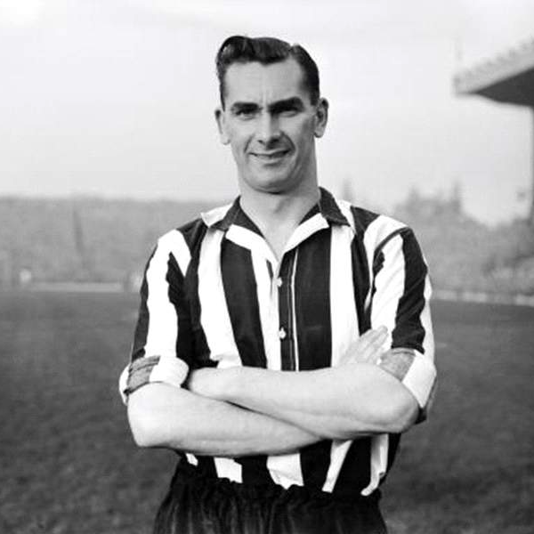 Jackie Milburn (11 May 1924 – 9 October 1988), or 'Wor Jackie', as the fans dubbed him, was the most famous member of the great Newcastle team of the 1950s. He was born in the North East mining town of Ashington in 1924. After leaving school at the age of fourteen he tried his hand at a variety of jobs. Having won a trial with Newcastle, he scored six goals in one game. He was instantly signed up for the first team for the statutory £10 registration fee, and quickly became a favourite with the Magpies' fans. Milburn achieved a scoring rate of a goal every other game becoming the club's second highest league and cup goalscorer with 200 goals; six goals behind Alan Shearer. He led the attack as Newcastle won the FA Cup three times in five seasons, in 1951, 1952 and 1955. Milburn scored both goals in the team's 2-0 win over Blackpool in the 1951 Final, and put away a classic header to set up a 3-1 win over Manchester City four years later. Milburn succeeded Tommy Lawton as England centre-forward, and scored 10 goals in only 13 international appearances. He left the Magpies in June, 1957 to join the Belfast club Linfield F.C. as player/coach at Windsor Park. He retired as a player in 1963 after was briefly manager of Ipswich Town before taking up a career in journalism. His funeral in 1988 was attended by tens of thousands of mourners and the city honoured him with statue which stands outside its main shopping centre. Len Shackleton once declared: 'Once he got going he was unstoppable. Whenever I think of Jackie I think of a greyhound going out of a trap'.