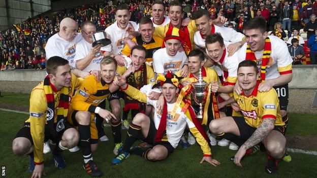 In 2001 they won promotion and remarkably the following season they returned to the Scottish Premier League. They held on for three seasons until finishing bottom in 2004; relegated again the following season, they found themselves back in the Second Division, only to win promotion back to Scottish Division One (second level) after a dramatic play-off victory on penalties against Peterhead. Eight years after their return to Division One, Thistle won the 2012-13 title and returned to the top tier of what was now the Scottish Professional Football League. At the end of the 2017-18 season Thistle finished in 11th position, narrowly avoiding 12th place with Ross County being automatically relegated. Thistle subsequently went into the Scottish Premiership play-offs against Livingston, who had finished second in the Scottish Championship. They lost both legs of the play-offs and were relegated from Premiership after a five year stay.